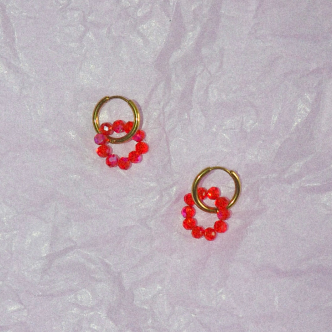 Helmirenkaat on valmistettu lasihelmistä. Korut kootaan käsityönä Turussa. Korvaan tulevat metalliosat ovat korkealaatuista ruostumatonta terästä, jonka pitäisi sopia myös nikkeliallergikoille.